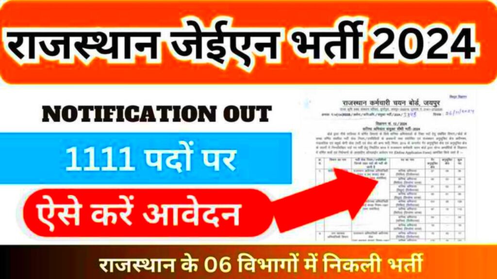 राजस्थान कर्मचारी चयन बोर्ड जयपुर के द्वारा इस भर्ती के लिए ऑफिशल नोटिफिकेशन जारी कर दिया गया है और इस भर्ती के लिए कुल 1111 पर निर्धारित किए गए हैं इस भर्ती के लिए ऑनलाइन आवेदन फार्म 10 दिसंबर 2024 से लेकर तक भरे जाएंगे