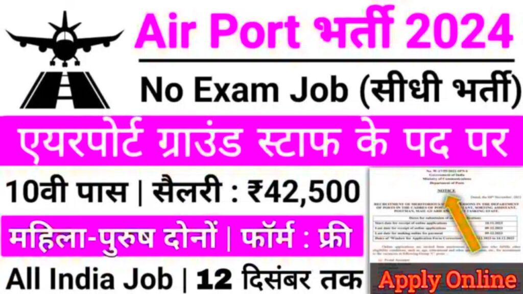 एयरपोर्ट ग्राम स्टाफ भर्ती का 12वीं पास के लिए नोटिफिकेशन जारी कर दिया गया जिसके लिए आवेदन फार्म शुरू हो गए हैं और उसकी अंतिम तिथि 12 दिसंबर तक है एयरपोर्ट ग्राम स्टाफ सुपरवाइजर भर्ती का नोटिफिकेशन जारी किया गया है
