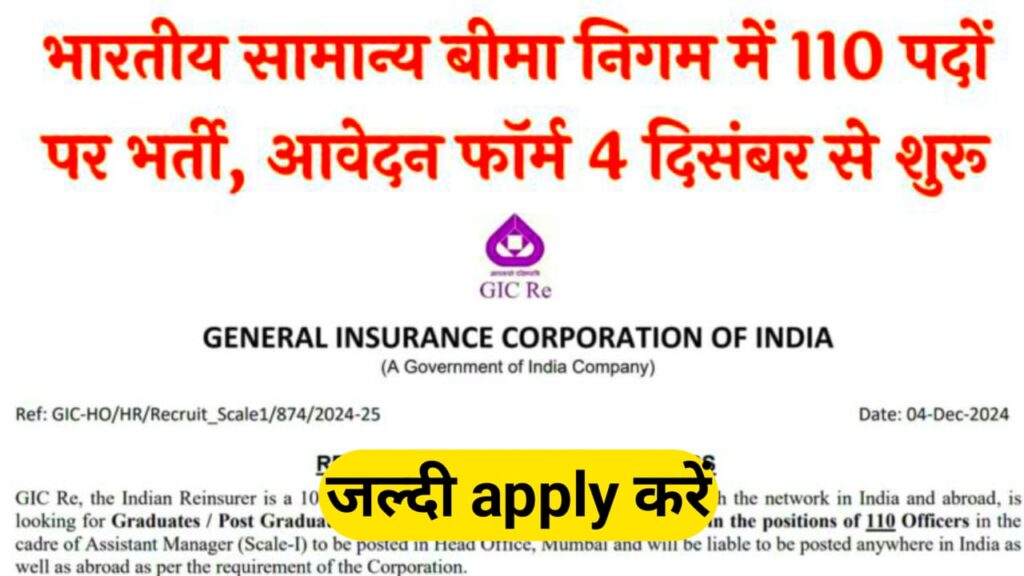 भारतीय सामान्य विभाग निगम में असिस्टेंट मैनेजर के पद पर 110 पदों के लिए नोटिफिकेशन जारी किया जिसमें महिला और पुरुष दोनों ऑनलाइन आवेदन कर सकते हैं सभी राज्य के क्रांतिकारी के लिए आप लोग आवेदन कर सकते हैं हेड ऑफिस मुंबई रहने वाली है
