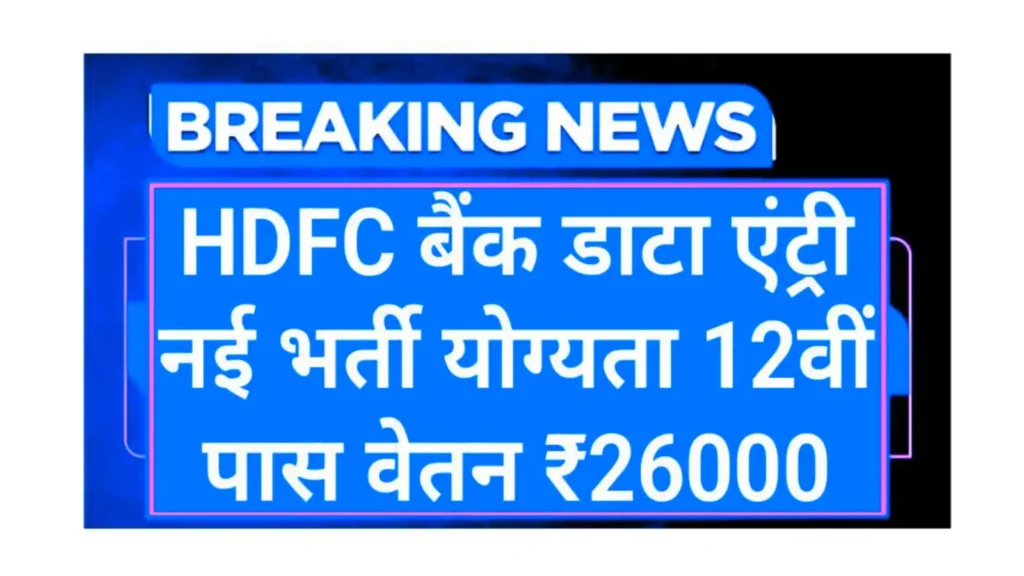 HDFC Bank Data Entry भर्ती 2025:- अगर आप भी बैंकिंग सेक्टर में नौकरी करना चाहते हैं और आपके पास कंप्यूटर और डाटा एंट्री का थोड़ा भी अनुभव है, तो आपके लिए एक बहुत ही शानदार मौका आया है। HDFC बैंक ने हाल ही में Data Entry Operator सहित कई पदों पर भर्ती की घोषणा की है। इस भर्ती के लिए पुरुष और महिला दोनों उम्मीदवार आवेदन कर सकते हैं। आइए इस भर्ती से जुड़ी हर जानकारी को आसान और विस्तार से समझते हैं।