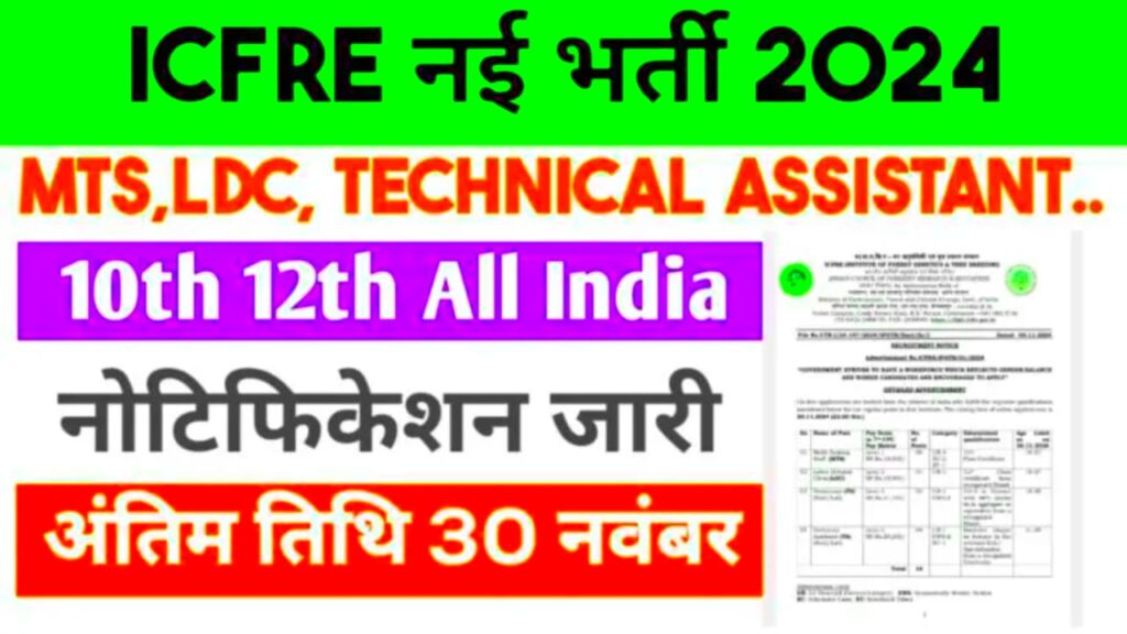 ICFRE Vacancy : 10वीं पास के लिए निकली नई भर्ती अनुवांशिक एवं प्रजनन स्थान पर