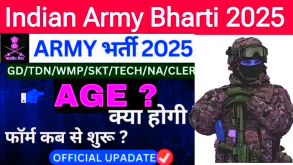 इस भर्ती में आयु सीमा क्या लगने वाली है तुम्हें आपके नॉलेज के लिए बताना चाहता हूं कि आर्मी भर्ती 2025 के लिए सारे पदों पर शामिल किया गया है और अलग-अलग आयु सीमा निर्धारित की गई है आप लोगों को उनसे भी पदों के नाम दिए गए हैं