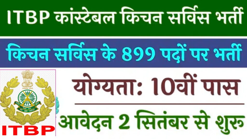 ITBP Constable Recruitment 2024 आइटीबीपी कांस्टेबल किचन सर्विस दसवीं पास के लिए निकली भर्ती जल्दी आवेदन करें