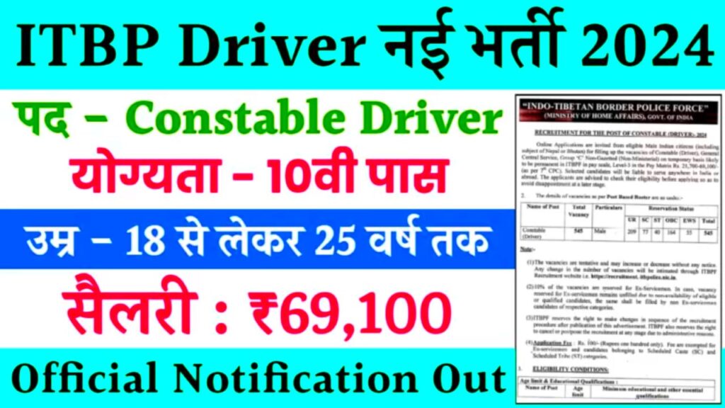 ITBP driver constable vacancy 2024: ड्राइवर के पदों पर निकली दसवीं पास के लिए भर्ती जाने आवेदन प्रक्रिया