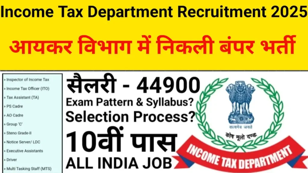Kolkata Income Tax Recruitment 2025: इनकम टैक्स डिपार्टमेंट में निकली नई भर्ती दसवीं पास के लिए ऑनलाइन आवेदनशुरू