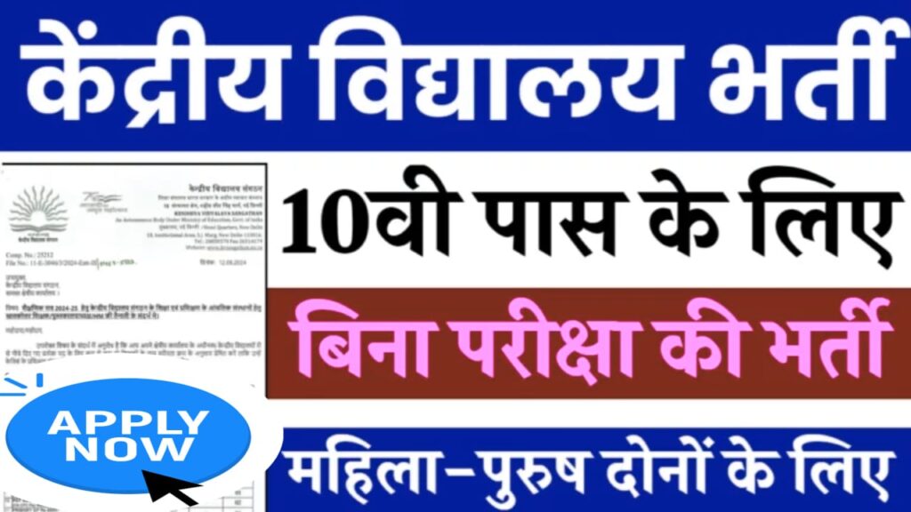 KVS RECRUITMENT 2024 केंद्रीय विद्यालय में बिना परीक्षा भर्ती जल्दी आवेदन करें