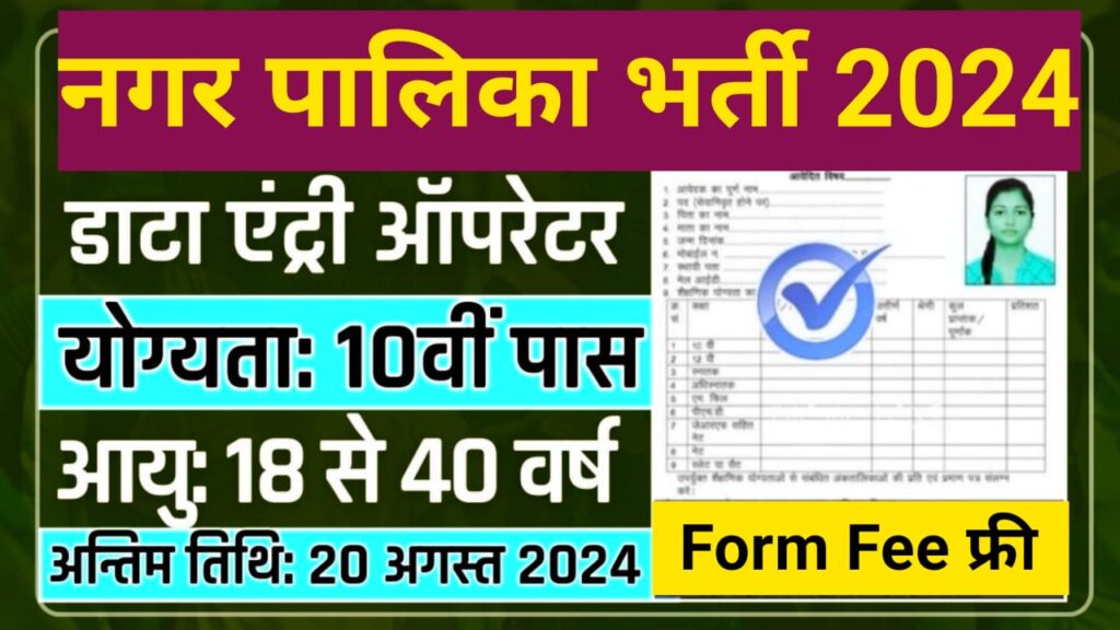 Nagar Palika Data Entry Recruitment 2024 नगर पालिका में निकली बिना परीक्षा भर्ती जल्दी आवेदन फार्म भरे