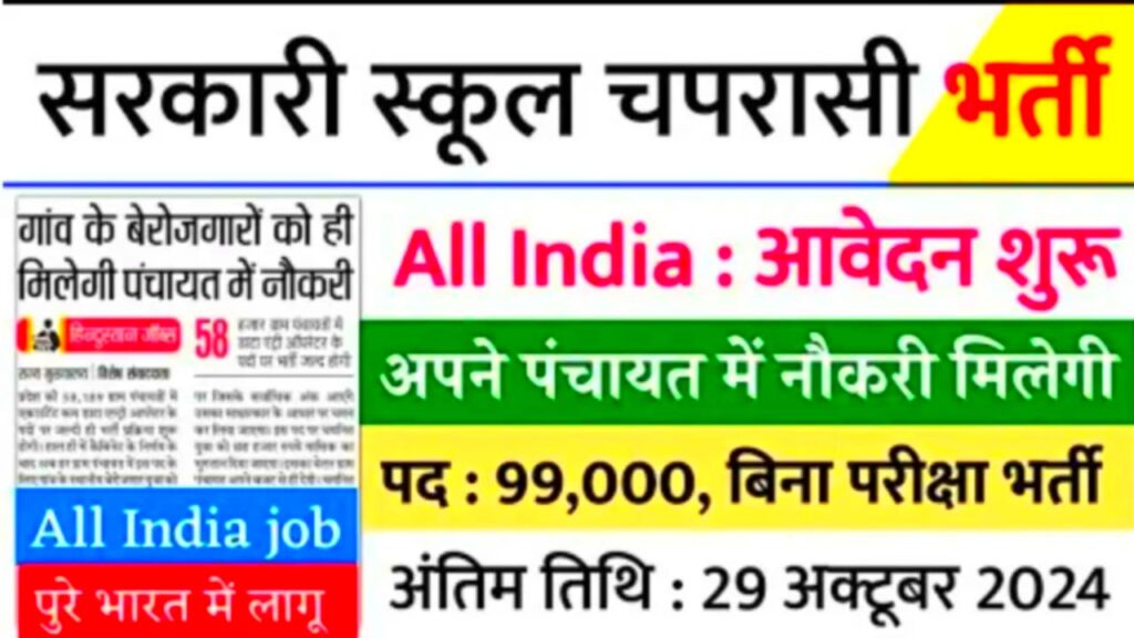 नमस्कार दोस्तों अगर आप भी सरकारी स्कूल चपरासी भर्ती में फॉर्म अप्लाई करना चाहते हैं तो आपके लिए सभी राज्यों के उम्मीदवार आवेदन कर सकते हैं
