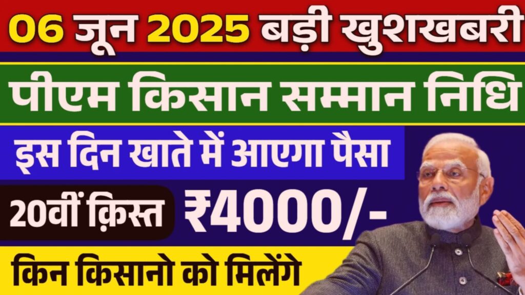 PM Kisan 20वीं किस्त 2025:- अगर आप एक किसान हैं और पीएम किसान योजना का लाभ ले रहे हैं तो आपके लिए बहुत ही जरूरी खबर है। प्रधानमंत्री किसान सम्मान निधि योजना (PM-KISAN) की 20वीं किस्त का इंतजार अब जल्द खत्म होने वाला है। सरकार की तरफ से किसानों को हर साल ₹6000 की राशि तीन बराबर किस्तों में दी जाती है, और अब ₹4000 की अगली किस्त जल्द ही आपके खाते में ट्रांसफर होने वाली है।