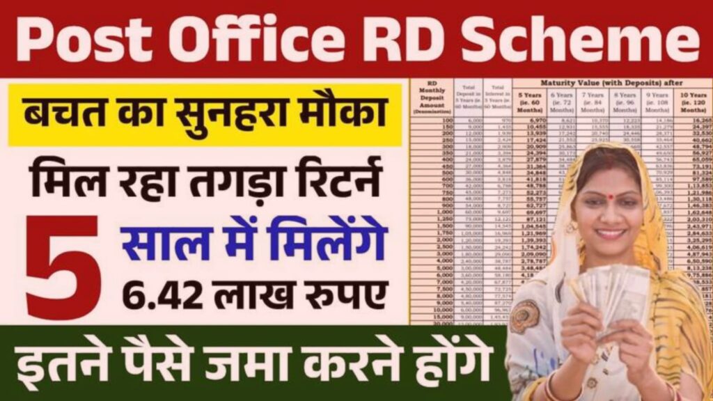 Post Office RD Scheme 2025:- अगर आप हर महीने थोड़ी-थोड़ी बचत करके एक अच्छा फंड बनाना चाहते हैं और चाहते हैं कि आपका पैसा पूरी तरह सुरक्षित रहे, तो पोस्ट ऑफिस की आरडी योजना (Post Office Recurring Deposit Scheme) आपके लिए एक शानदार विकल्प हो सकता है।