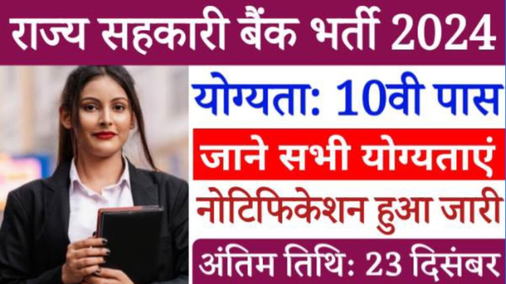 नमस्कार दोस्तों अगर आप भी राज्य सहकारी बैंक भारती 2024 में फॉर्म अप्लाई करना चाहते हैं तो आपके लिए बहुत बड़ी कुछ कर दिया चुकी है राज्य सहकारी बैंक भारती की तरफ से जिसमें 10वीं पास भारती का नोटिफिकेशन जारी कर दिया गया है और 23 दिसंबर फॉर्म भर सकते हैं तो आप लोग इस धरती में जल्द से जल्द फॉर्म भर सकते हैं