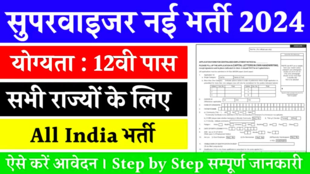 नमस्कार दोस्तों अगर आप भी सुपरवाइजर भर्ती में फॉर्म अप्लाई करना चाहते हैं तो आपके लिए बहुत बड़ी खुशखबरी आ चुकी है सुपरवाइजर भर्ती 2024 के लिए 12वीं पास भारती का नोटिफिकेशन जारी कर दिया गया है जिसमें 30 नवंबर तक फॉर्म भरे जाएंगे