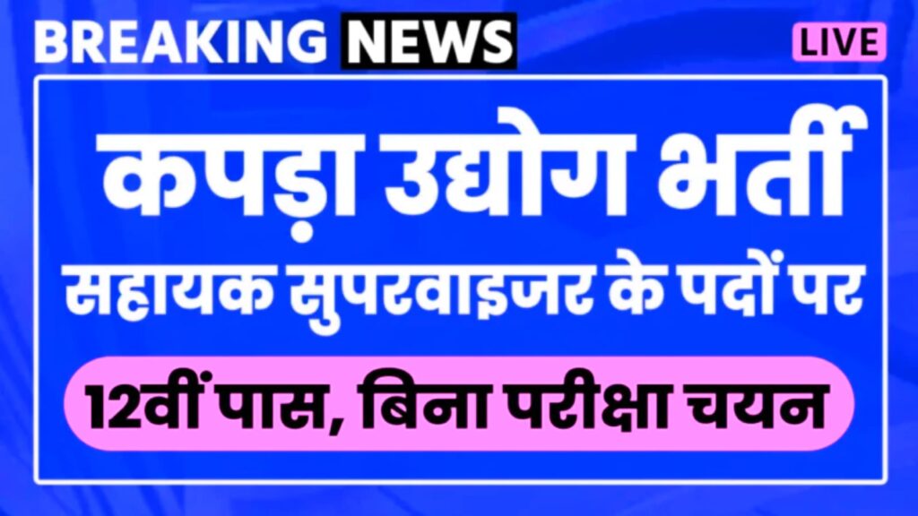 नमस्कार दोस्तों अगर आप भी कपड़ा उद्योग सुपरवाइजर भर्ती 2024 में फॉर्म अप्लाई करना चाहते हैं तो आपके लिए बहुत बड़ी खुशखबरी आ चुकी है