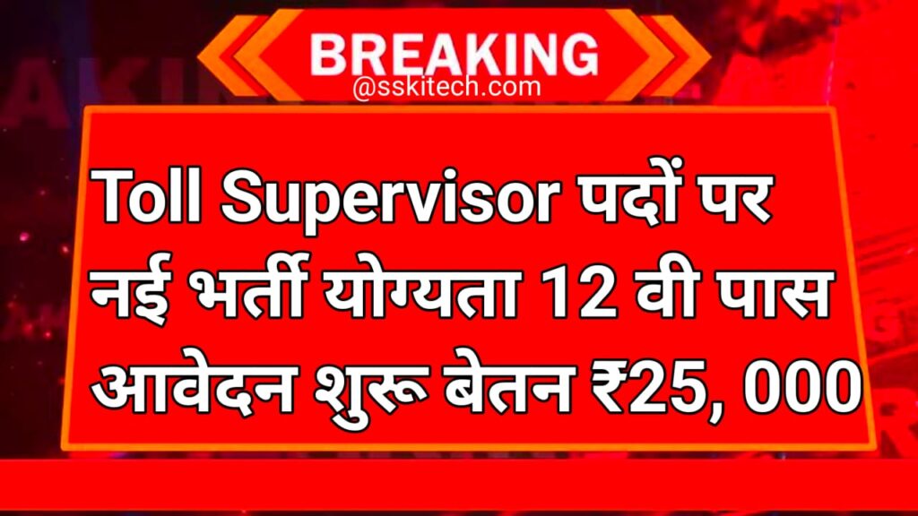 Toll Supervisor Recruitment 2024 टूल सुपरवाइजर पदों पर निकाली नई भर्ती 12वीं पास के लिए जल्दी आवेदन करें